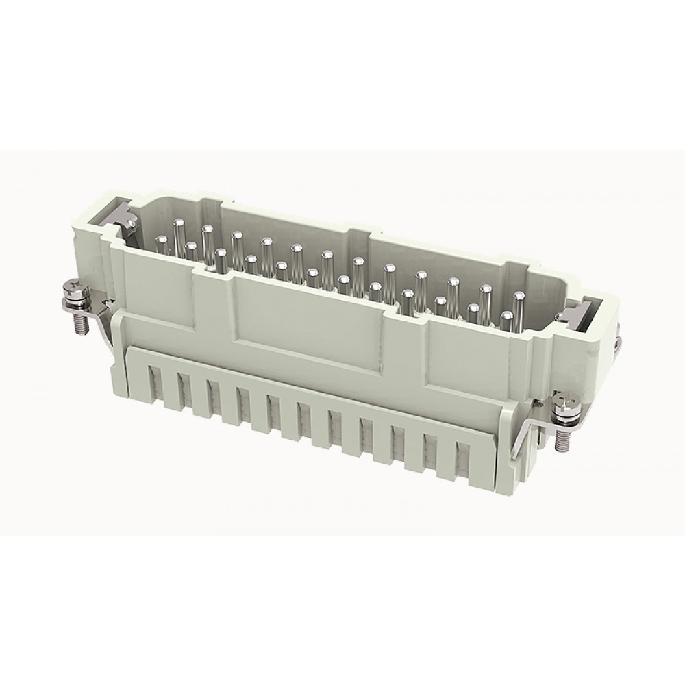 Вилочная контактная вставка, пружинная фиксация, 24 полюса + PE, типоразмер 24B, 500V, 16A, сечение обслуживаемых проводников 0,75-2,5 мм кв, тип покрытия контактов: серебро