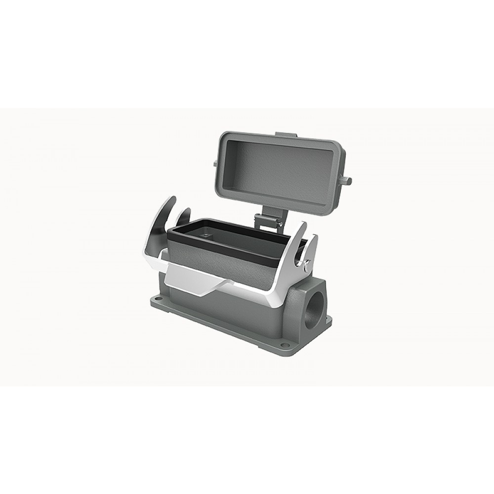 Основание разъема на панель, закрытое, типоразмер 16B, с уплотнителем, 2 отверстия с резьбой для кабельных вводов M25x1,5, с одной защелкой, с защитной крышкой, материал корпуса: алюминиевый сплав