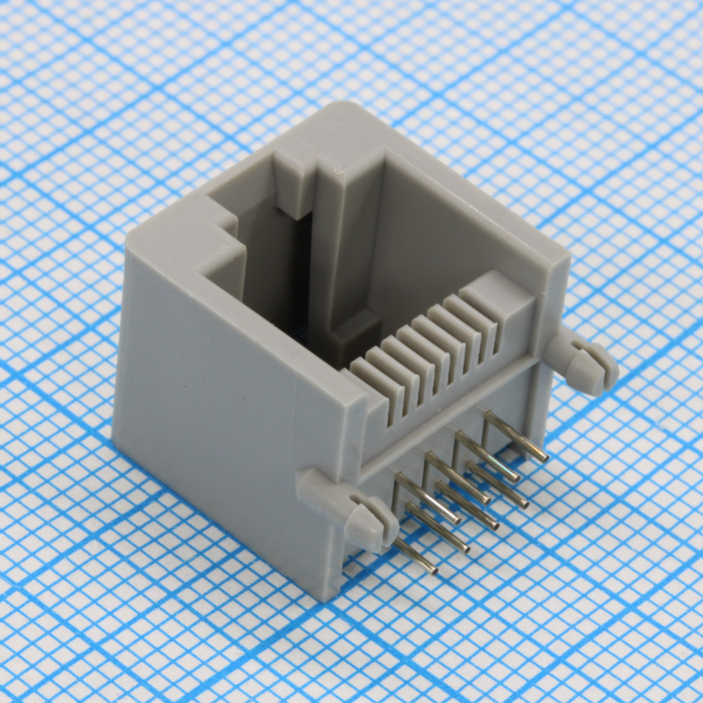 Розетка 8P8C (RJ45) на плату угловая, с ушами, цвет серый