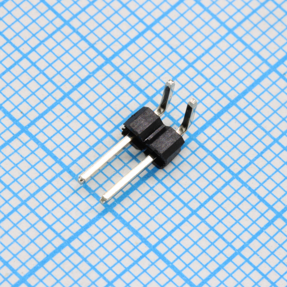Соединитель штыревой, вилка на плату однорядная угловая, 2pin(1x2), шаг 2.54мм (A=6.3mm, B=3.20mm, C=4.36mm), тип - U