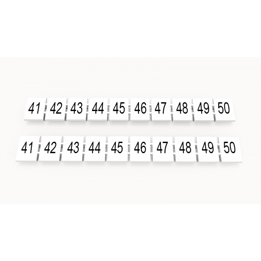 Кассета с маркировочными шильдиками, для клемм сечением 6 мм.кв., верхняя, 10 шильдиков, нанесенные символы: 41...50, с вертикальным расположением, размер шильдика: 7,45 x 10,7 мм, цвет: белый