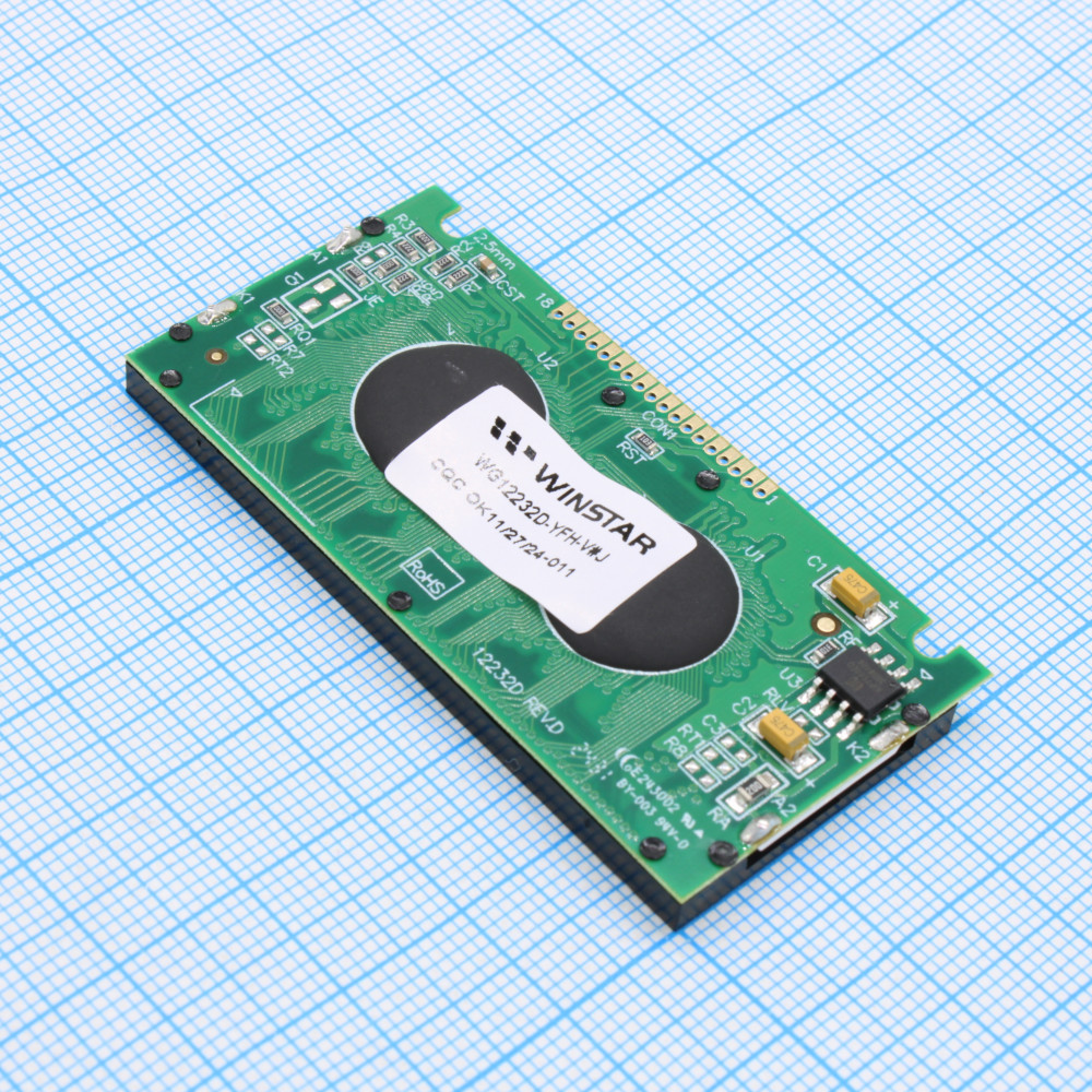 Доставка WG12232D-YFH-V#J , ЖКИ графич, 122 x 32, FSTN белый Positive/Transfl, подсв. LED Ж-Зел, VDD = 5V, 6 o`cl, -20...+70C
