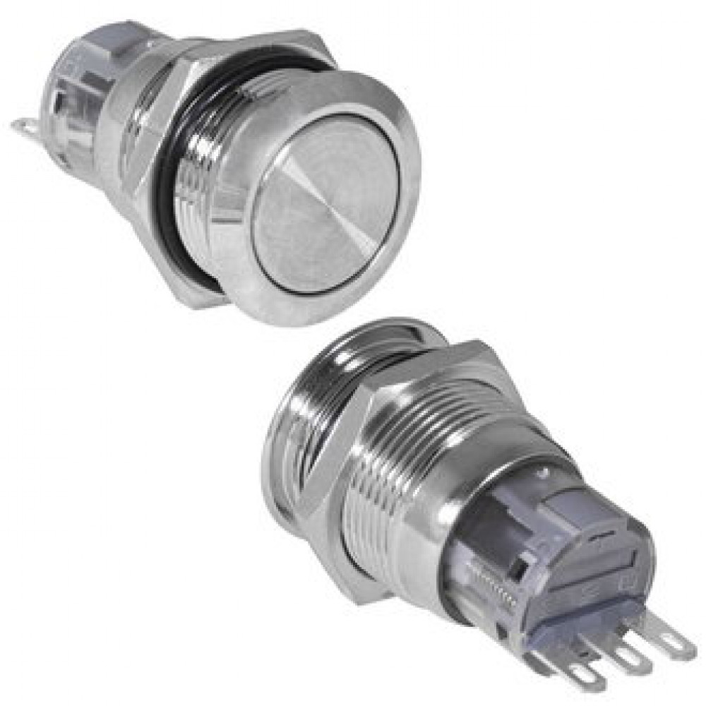 LAS1-AGO-11Z/N ON-ON, Кнопка антивандальная металлическая с фиксацией, 5А 250В, резьба М19