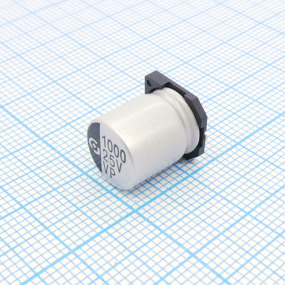 VP1E102MG125000CE0, Конденсатор электролитический низкоимпедансный 1000мкФ ±20% 25В (10 Х 12.5мм) для поверхностного монтажа 2000часов 105C лента на катушке