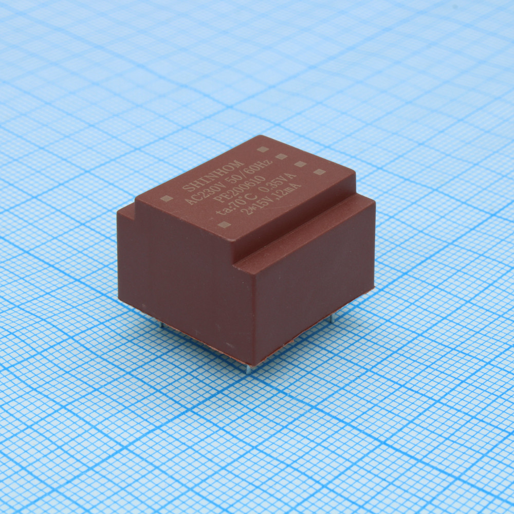 Доставка PE200610 , Трансформатор питания 0.35ВА 230В 2х15В/2х12мА ta 70°C (EE 20/6) 15мм.