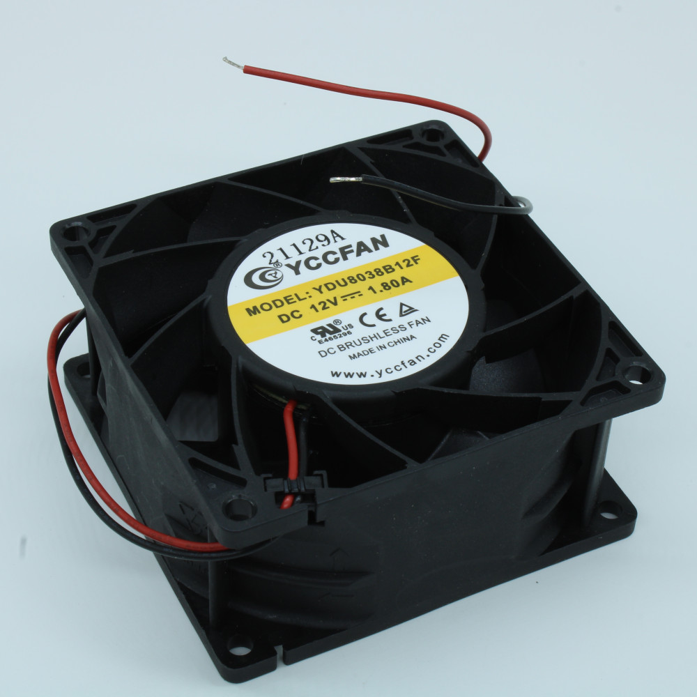 YDU8038B12F, Вентилятор 12В 80х80x38 B, 15.96W, 11000 об/мин, 142.43м3/час, 59.5дБ, подшипник качения, тип вывода - провод