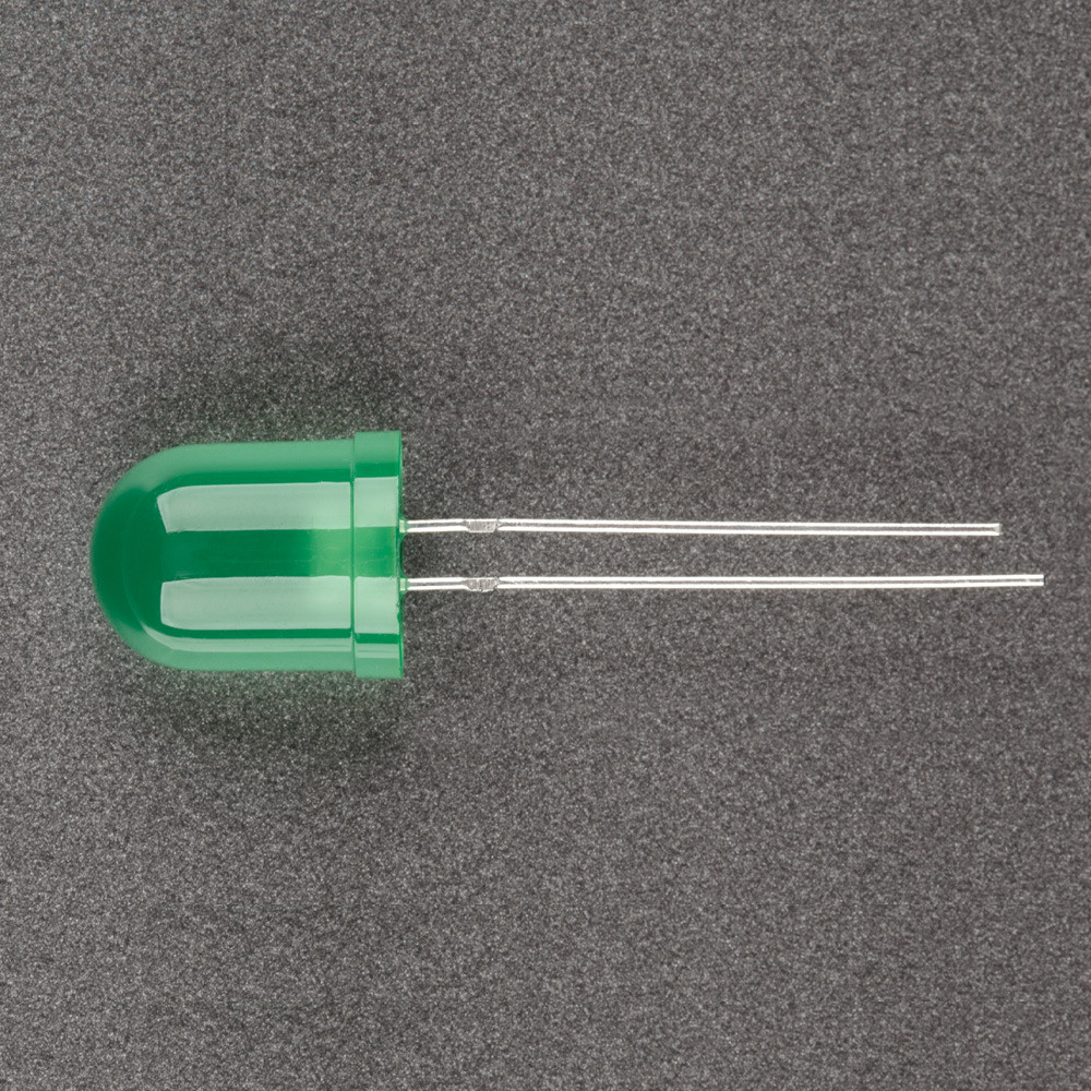 Поставка под заказ от 5000 шт. Выводной круглый светодиод, d=10 мм, диффузная зеленая линза. Цвет свечения сине-зеленый (505 нм). Угол излучения 40°. Сила света Iv=6000-9000 мкд, If=20 мА. VF=2.9-3.3 В. Рекомендуемый постоянный рабочий ток <16-17 мА.