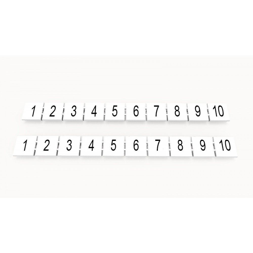 Маркировка (в кассетах) ZB10-10P-19-01Z(H), Кассета с маркировочными шильдиками, для клемм сечением 10 мм.кв., верхняя, 10 шильдиков, нанесенные символы: 1...10, с вертикальным расположением, размер шильдика: 9,3 x 10,7 мм, цвет: белый