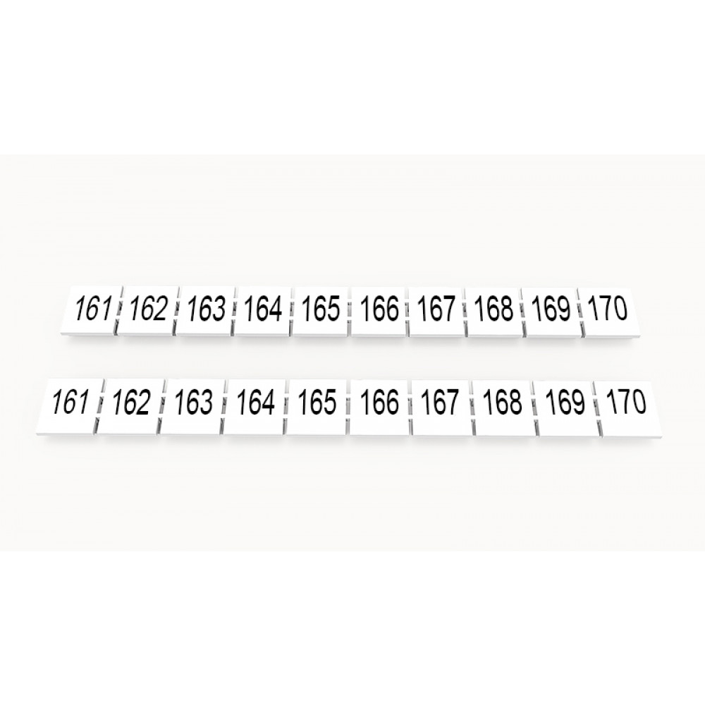 Кассета с маркировочными шильдиками, для клемм сечением 10 мм.кв., верхняя, 10 шильдиков, нанесенные символы: 161...170, с вертикальным расположением, размер шильдика: 9,3 x 10,7 мм, цвет: белый
