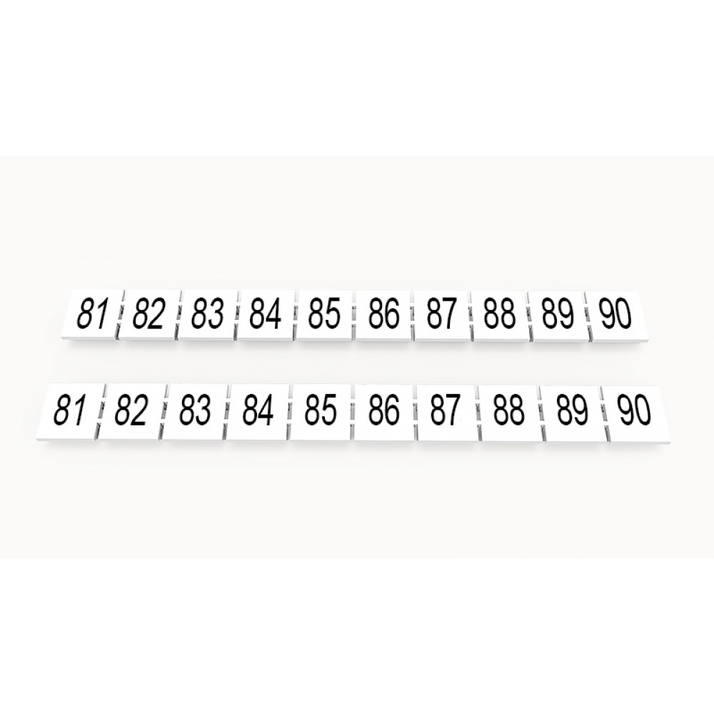 Кассета с маркировочными шильдиками, для клемм сечением 10 мм.кв., верхняя, 10 шильдиков, нанесенные символы: 81...90, с вертикальным расположением, размер шильдика: 9,3 x 10,7 мм, цвет: белый