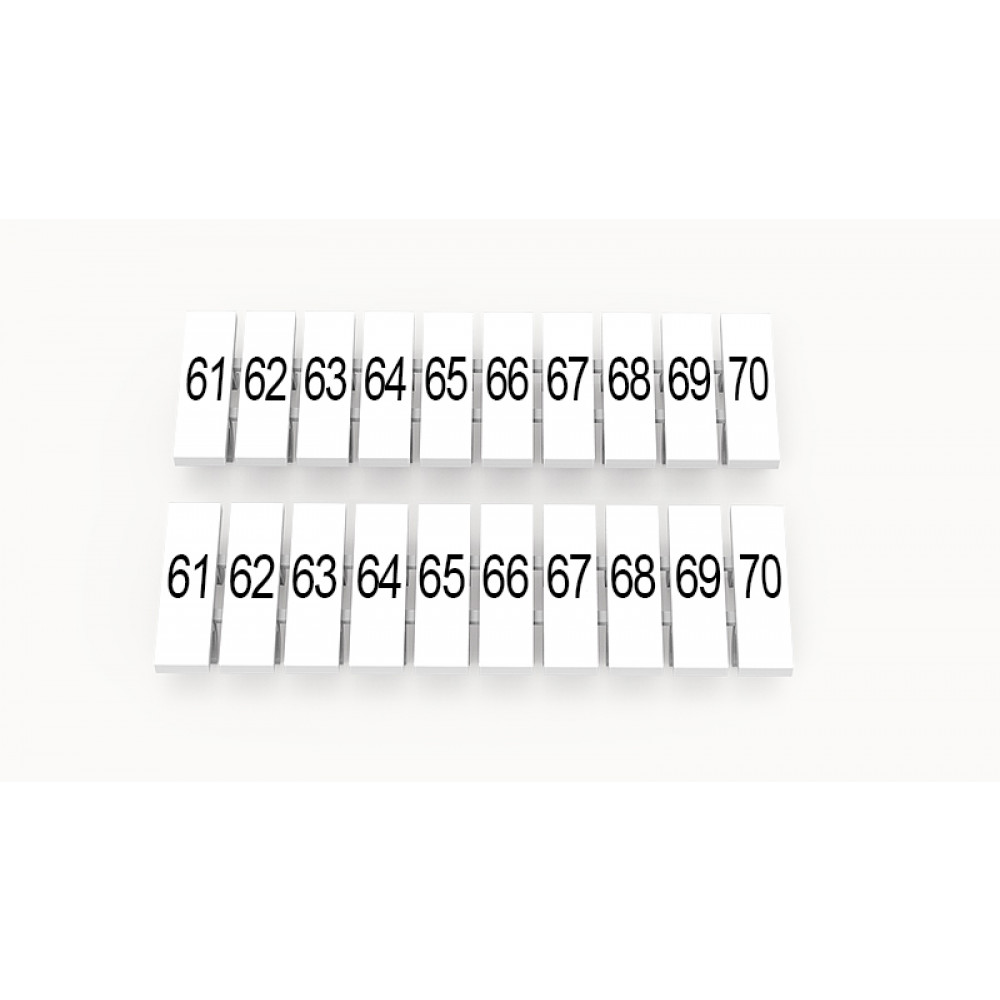 Кассета с маркировочными шильдиками, для клемм сечением 1,5 мм.кв., верхняя, 10 шильдиков, нанесенные символы: 61...70, с вертикальным расположением, размер шильдика: 2,95 x 10,7 мм, цвет: белый