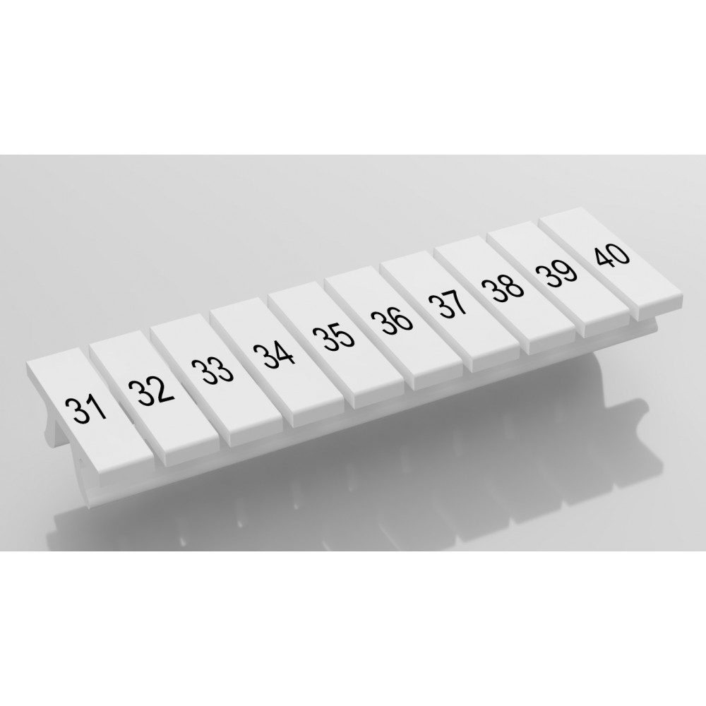 Кассета с маркировочными шильдиками, для клемм сечением 1,5 мм.кв., верхняя, 10 шильдиков, нанесенные символы: 31...40, с горизонтальным расположением, размер шильдика: 2,95 x 10,7 мм, цвет: белый