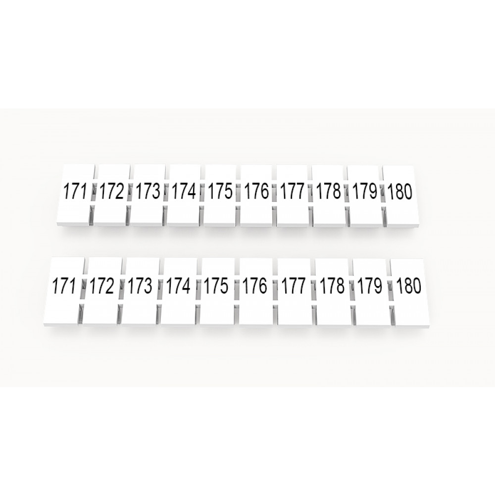 Кассета с маркировочными шильдиками, для клемм сечением 4 мм.кв., верхняя, 10 шильдиков, нанесенные символы: 171...180, с вертикальным расположением, размер шильдика: 5,55 х 10,7 мм, цвет: белый