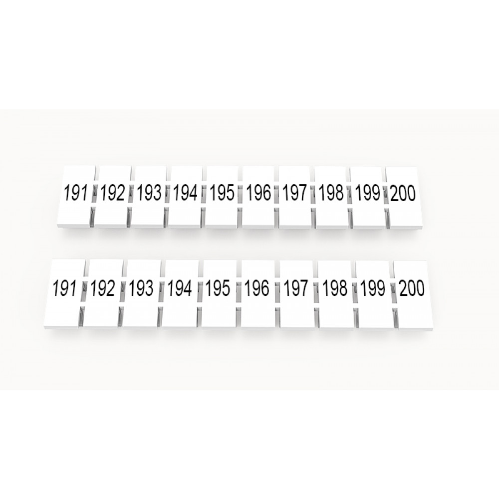 Кассета с маркировочными шильдиками, для клемм сечением 4 мм.кв., верхняя, 10 шильдиков, нанесенные символы: 191..200, с вертикальным расположением, размер шильдика: 5,55 х 10,7 мм, цвет: белый