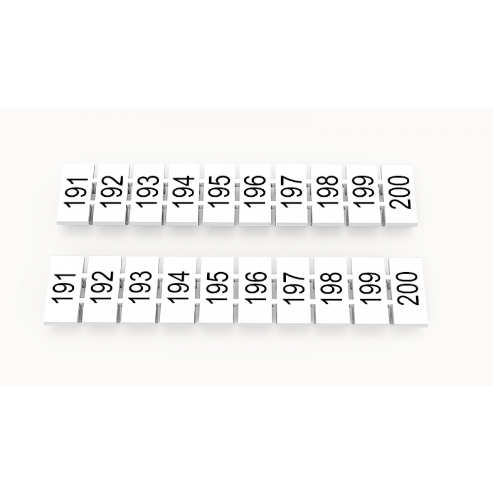 Кассета с маркировочными шильдиками, для клемм сечением 4 мм.кв., верхняя, 10 шильдиков, нанесенные символы: 191..200, с горизонтальным расположением, размер шильдика: 5,55 х 10,7 мм, цвет: белый