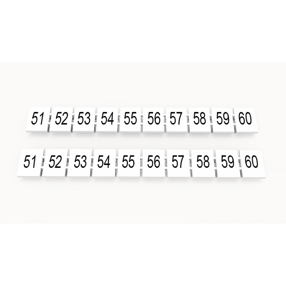 Кассета с маркировочными шильдиками, для клемм сечением 6 мм.кв., верхняя, 10 шильдиков, нанесенные символы: 51...60, с вертикальным расположением, размер шильдика: 7,45 x 10,7 мм, цвет: белый
