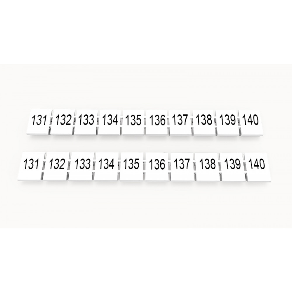 Маркировка (в кассетах) ZB8-10P-19-19Z(H), Кассета с маркировочными шильдиками, для клемм сечением 6 мм.кв., верхняя, 10 шильдиков, нанесенные символы: 131...140, с вертикальным расположением, размер шильдика: 7,45 x 10,7 мм, цвет: белый