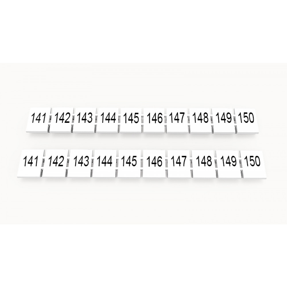 Кассета с маркировочными шильдиками, для клемм сечением 6 мм.кв., верхняя, 10 шильдиков, нанесенные символы: 141...150, с вертикальным расположением, размер шильдика: 7,45 x 10,7 мм, цвет: белый