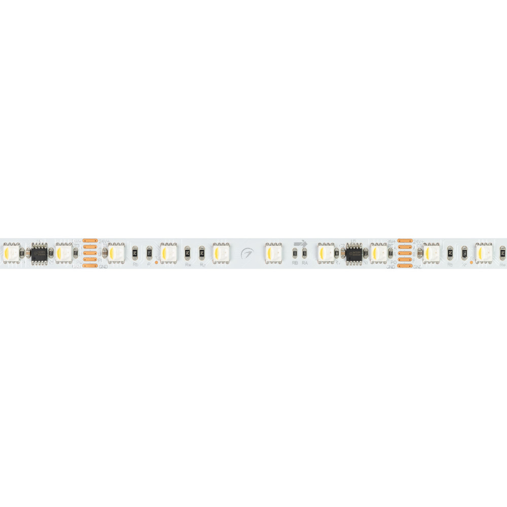 Лента DMX-B60-10mm 24V RGBW-PX6 (18 W/m, IP20, 5060, 5m) 033449, Светодиодная гибкая лента DMX-B60, открытая IP20, с интерфейсом DMX-512, микросхема SM16512PS. Светодиоды 5060, 60 шт/м (1 pixel = 6 LED), белая плата 10 мм, скотч 3М. Цвет RGB+4000K, цветопередача CRI>80, угол 120°. Питание 24 В, мощность 18 Вт/м (90 Вт