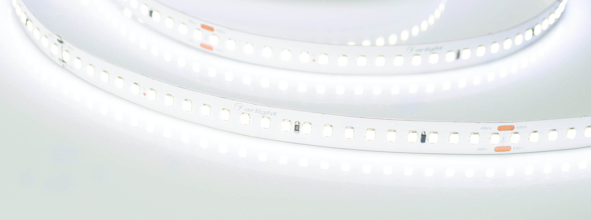 Лента IC 2-50000 48V Day4000 12mm (2835, 144 LED/m, LUX) 026833, Стабилизированная лента LUX, подключение 50м в одну линию, светодиоды smd 2835, 144шт/м (7200шт на 50м), белая плата 12мм, скотч 3М. Цвет ДНЕВНОЙ 3800-4200K. Питание 48V, мощность 5.8 Вт/м (290 Вт на 50м), угол 120°, цветопередача CRI>85. Размеры 50000х12