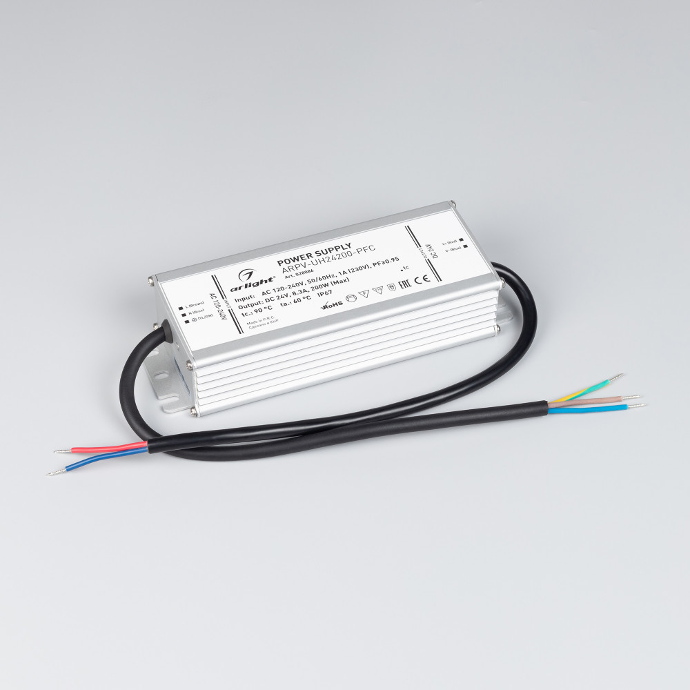Доставка Блок питания ARPV-UH24200-PFC (24V, 8.3A, 200W) 028086 , Источник напряжения с гальванической развязкой для светодиодных изделий. Входное напряжение 120-240 VAC. Выходные параметры: 24 В, 8.3 А, 200 Вт. Встроенный PFC >0.95. Герметичный алюминиевый корпус IP 67. Рабочая температура -40…+70C?. Габаритные размеры