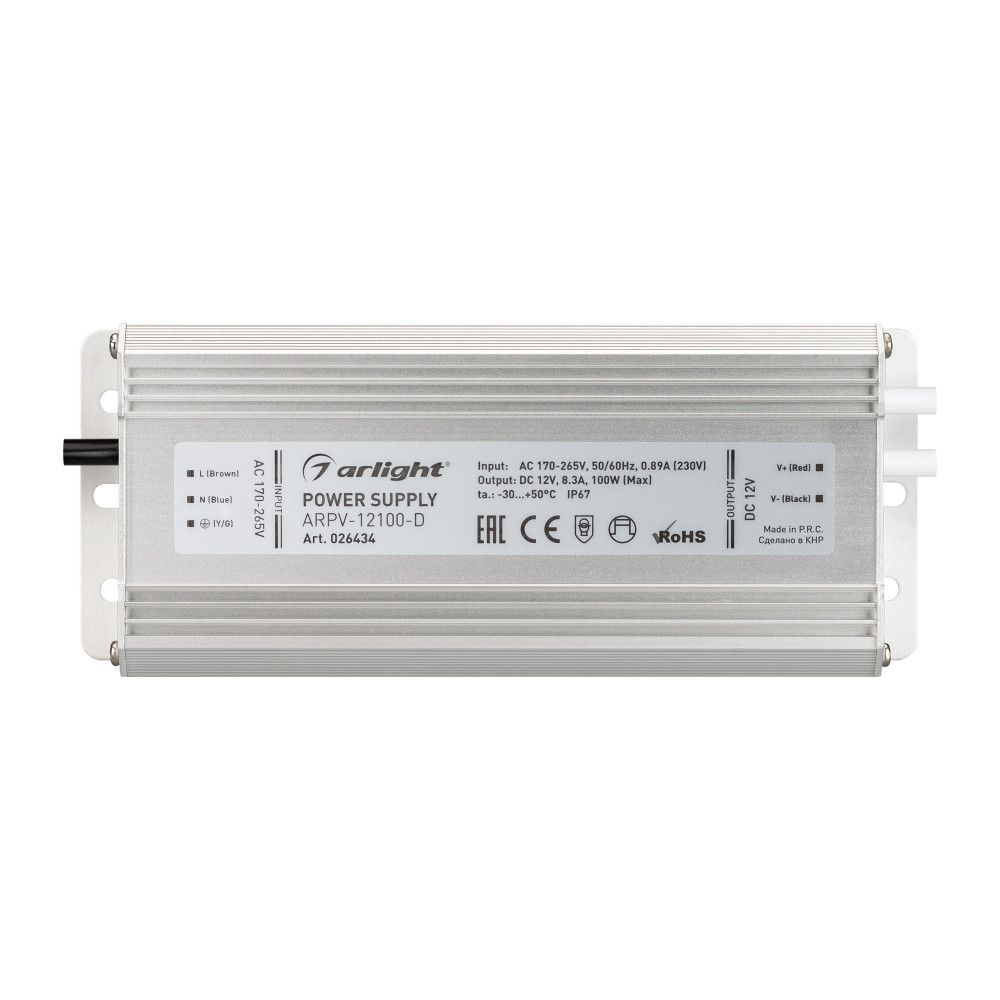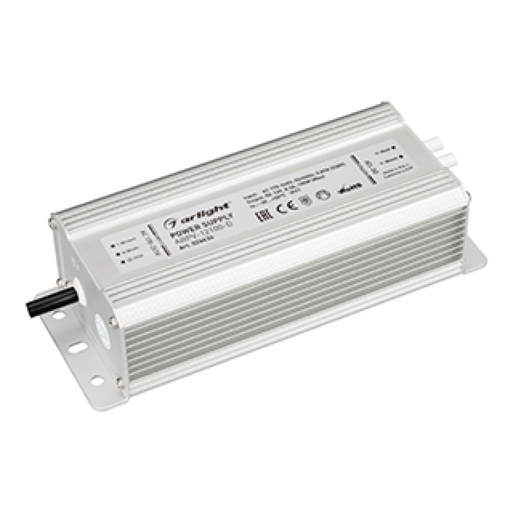 Блок питания ARPV-12100-D (12V, 8.3A, 100W) 026434, Источник напряжения с гальванической развязкой для светодиодных изделий. Входное напряжение 170-265 VAC. Выходные параметры: 12 В, 8,3 А, 100 Вт. Встроенный PFC >0,5. Герметичный алюминиевый корпус IP 67. Рабочая температура -30…+50C?. Габаритные размеры