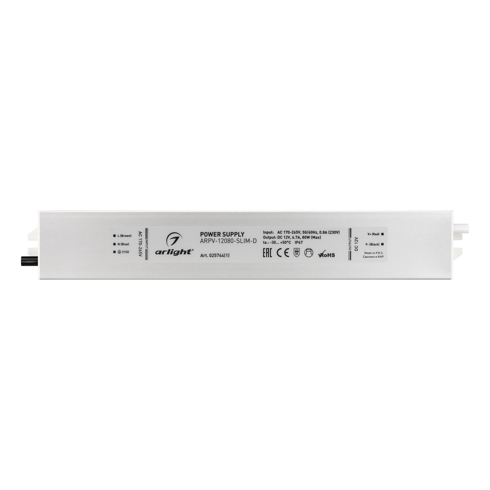 Блок питания ARPV-12080-SLIM-D (12V, 6.7A, 80W) 025744(1), Источник напряжения с гальванической развязкой для светодиодных изделий. Входное напряжение 170-265 VAC. Выходные параметры: 12 В, 6,7 А, 80 Вт. Встроенный PFC >0,5. Герметичный алюминиевый корпус IP 67. Рабочая температура -30…+50C?. Габаритные размеры д