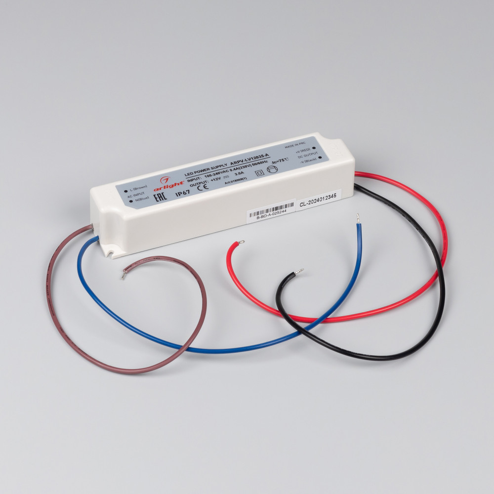 Блок питания ARPV-LV12035-A (12V, 3.0A, 36W) 018968(1), Источник напряжения с гальванической развязкой для светодиодных изделий. Входное напряжение 100 - 240 VAC. Выходные параметры: 12 В, 3 А, 36 Вт. Встроенный PFC >0,5. Герметичный пластиковый корпус IP 67. Рабочая температура -30…+70C?. Габаритные размеры д