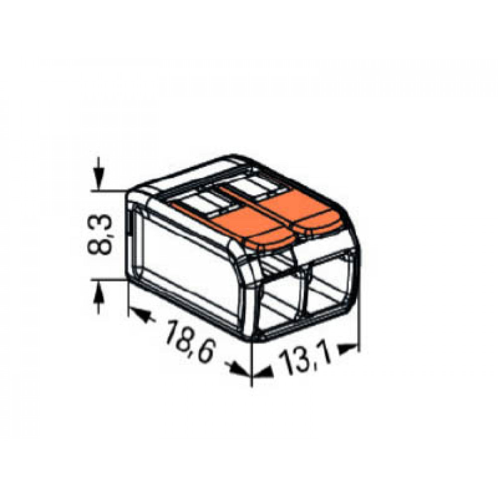 Клеммная колодка, 2 полюса, рычажковый зажим провода, сечение провода: 0.2 - 4 мм кв., номинальные характеристики: 450 V; 32 A; цвет прозрачный
