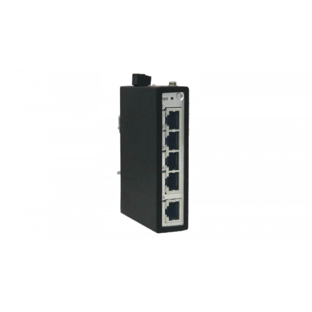 Коммутатор неуправляемый, 5 портов RJ-45, 10/100/1000BaseT, номинальное напряжение 12/24/48 VDC и 24 VAC, IP30, рабочая температура: -40°C~+75°C, монтаж DIN35