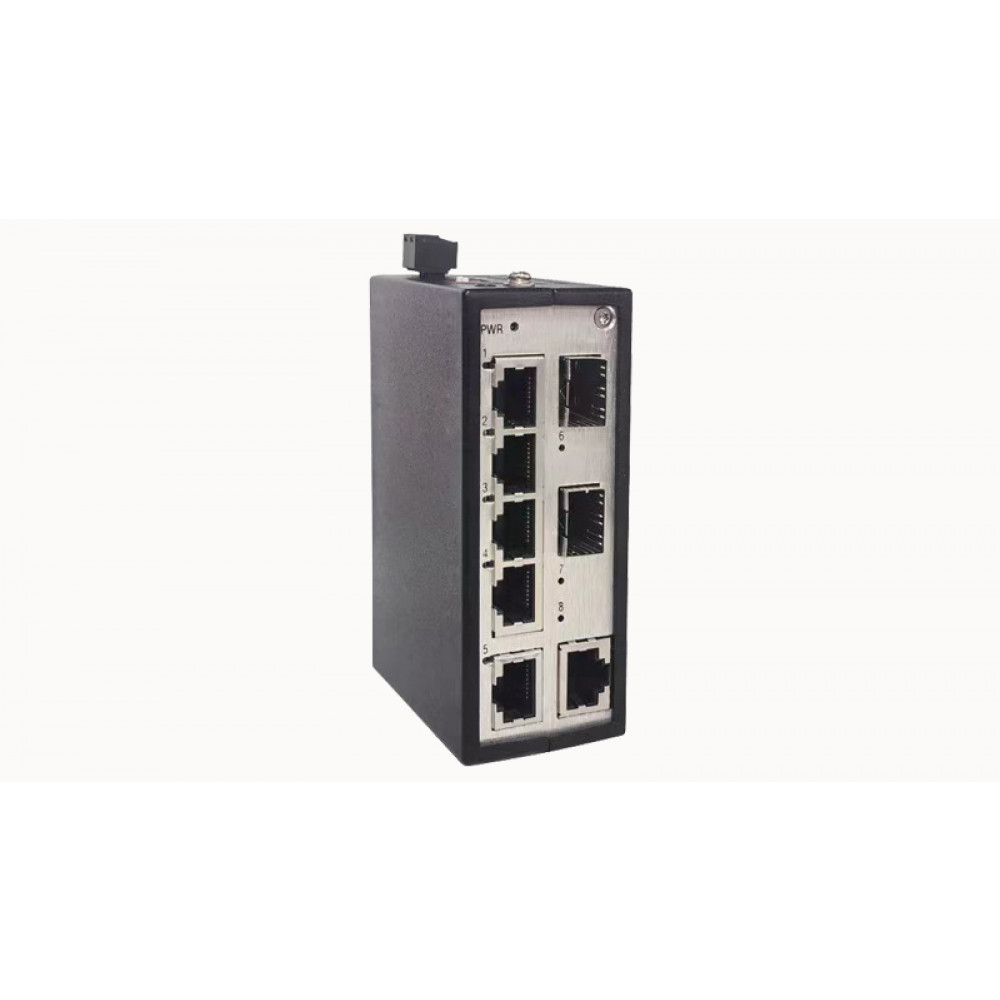Коммутатор неуправляемый, 6 портов RJ-45, 10/100BaseT, 2 порта SFP, номинальное напряжение 12/24/48 VDC и 24 VAC, IP30, рабочая температура: -40°C~+75°C, монтаж DIN35