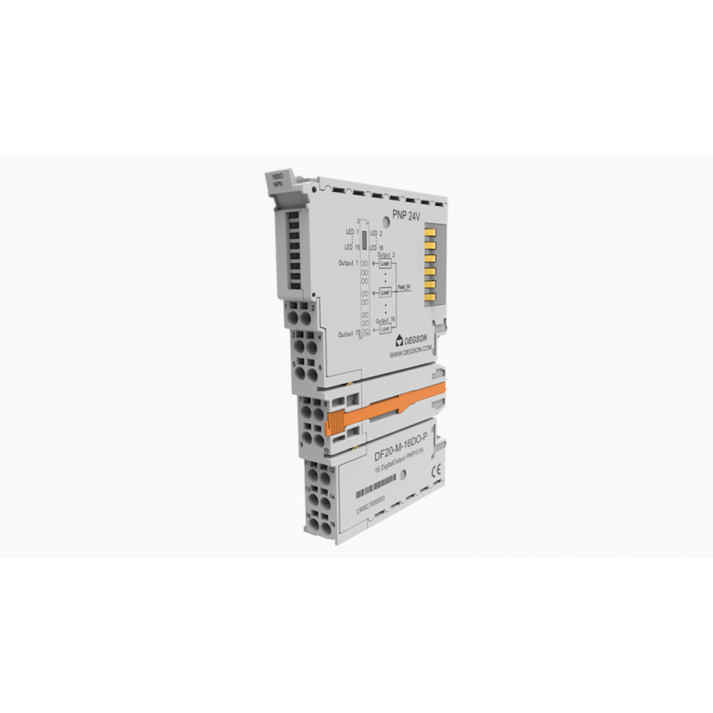 Модуль ввода цифр. DF20-M-16DO-P, Модуль ввода, цифровой, 16 каналов, поддержка ввода NPN, диапазон входных напряжений 0VDC / Высокоомное состояние, тип монтажа: DIN35