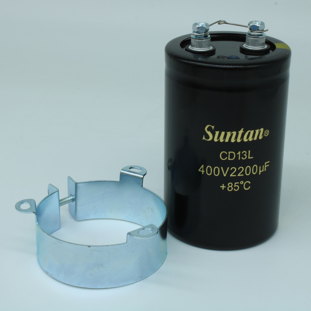 Алюминиевый электролитический конденсатор 400В 2200мкФ 64.3*105,7 85°C. В комплект поставки конденсаторов, произведённых после 01.12.2018, гайки/шайбы не входят