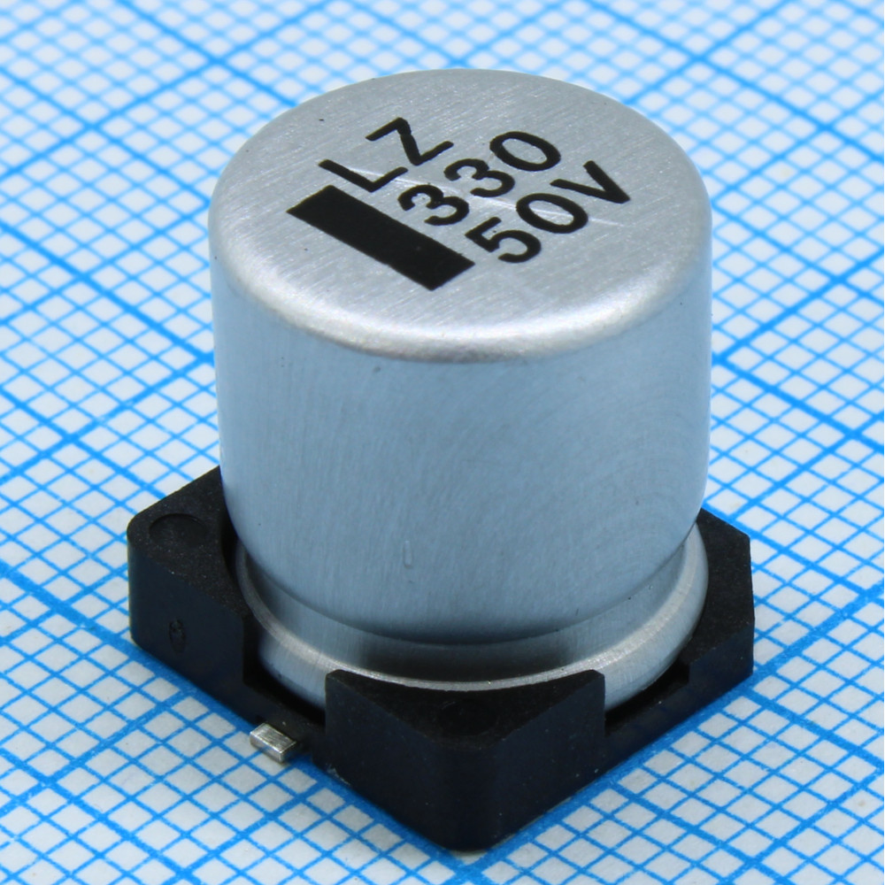 Конденсатор алюминиевый электролитический низкоимпедансный 330мкФ 50В 20% 650мА 0.25Ом SMD 12.5x13.5мм 2000ч 105C