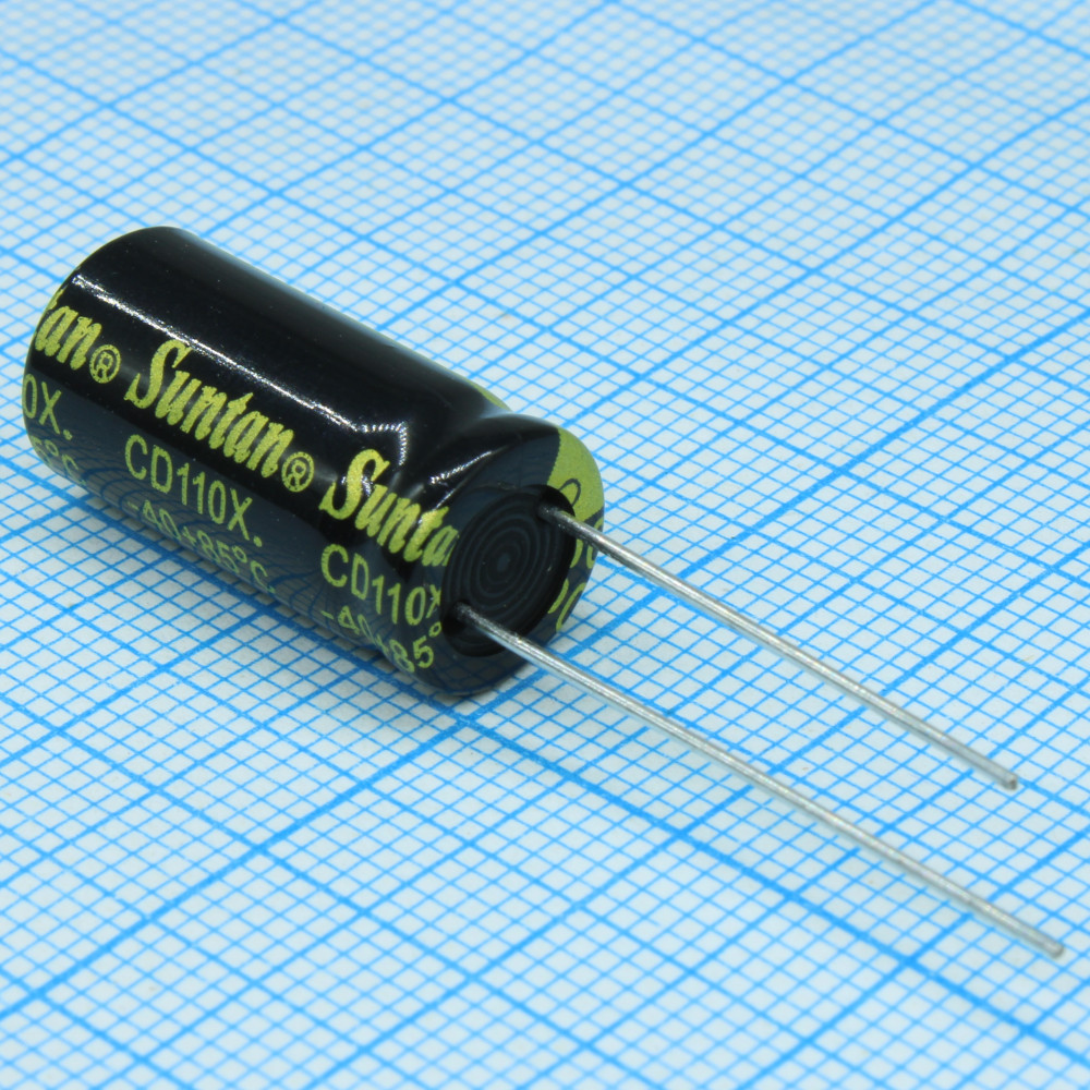 Конденсатор алюминиевый электролитический 100мкФ 100В ±20% (10 X 21мм) радиальные выводы 5мм 390мА 2000час 85°С россыпь