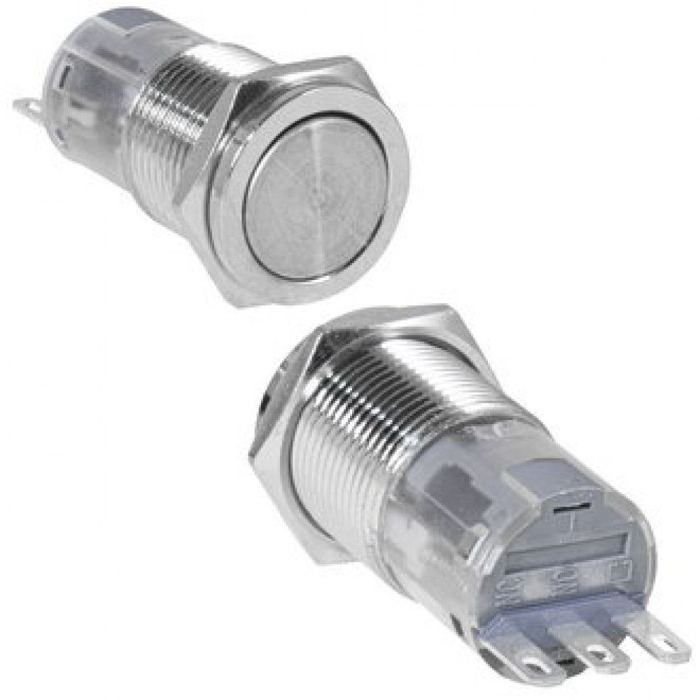 LAS2GQPF-11/N ON-(ON), Кнопка антивандальная металлическая без фиксации, 3А 250В, резьба М16