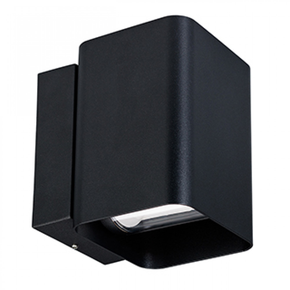 Уличный светодиодный светильник для стен, изменяемый угол освещения 0°-80°, свет вверх-вниз на 2 стороны. Цвет ТЕПЛЫЙ БЕЛЫЙ 3000К, светодиоды 2x6Вт CREE (750 лм). Влагозащищенный корпус IP54 - черный (RAL9011) алюминий, экран ударопрочный PC. Питание 230В