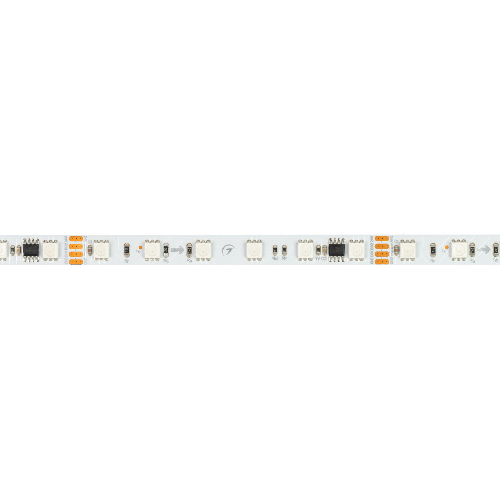 Светодиодная лента SPI-B60, открытая IP20, с микросхемой GS8206 (битый пиксель не влияет на передачу сигнала далее по ленте, подключение внешнего контроллера). Светодиоды 5060, 60 шт/м (1 pixel = 6 LED), белая плата 10 мм, скотч 3М. Цвет RGB, угол 120°