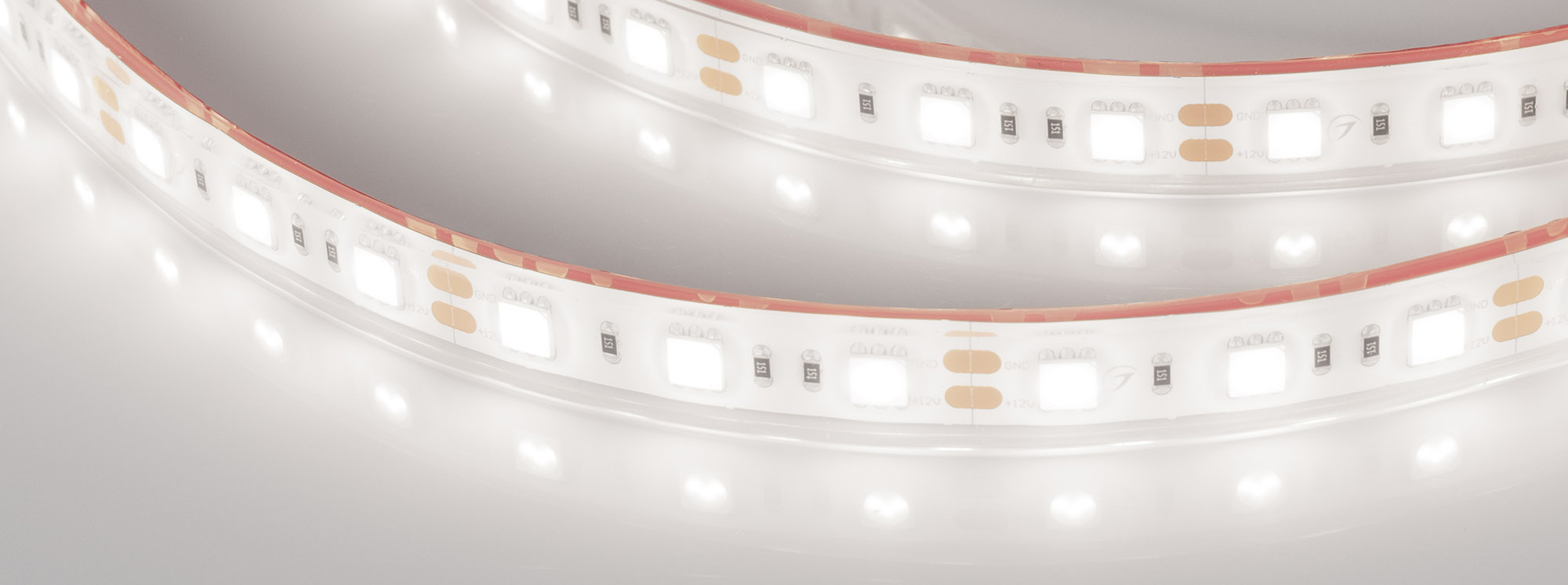 Светодиодная лента RTW-PFS-B60, герметичная IP68 (PFS-полная силиконовая экструзия). Светодиоды 5060, 60 шт/м (300 шт на 5 м), белая плата, ширина 13 мм, скотч 3M. Цвет ДНЕВНОЙ 5000K, цветопередача CRI>85, угол 120°. Питание 12V, мощность 14.4 Вт/м (72 Вт