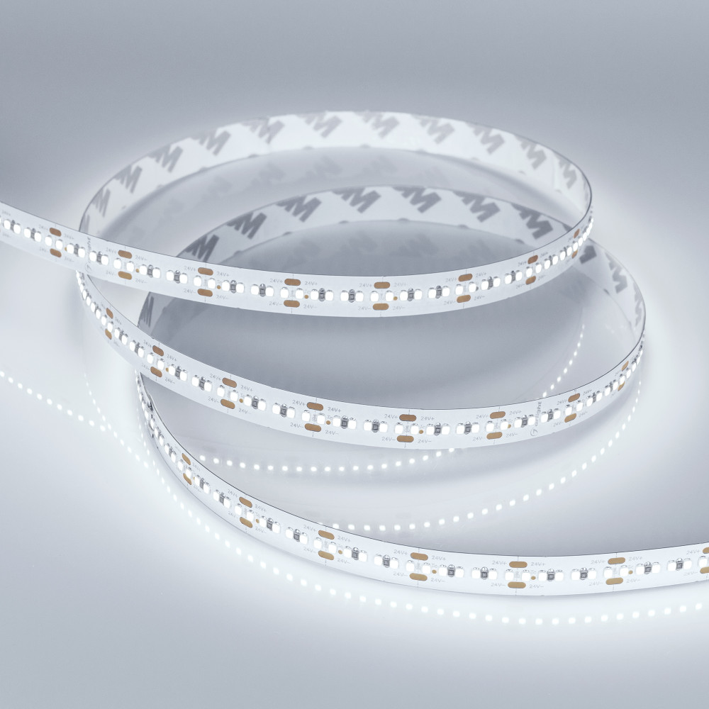 Светодиодная лента MICROLED-M300, открытая. Светодиоды 2216, 300 шт/м (1500 шт на 5 м), белая плата, ширина 10 мм, скотч 3M. Цвет БЕЛЫЙ 6000 K, цветопередача CRI>90, угол 120°. Питание 24V, мощность 21.6 Вт/м (108 Вт на 5 м). Размеры 5000x10x1.3 мм. Мин.