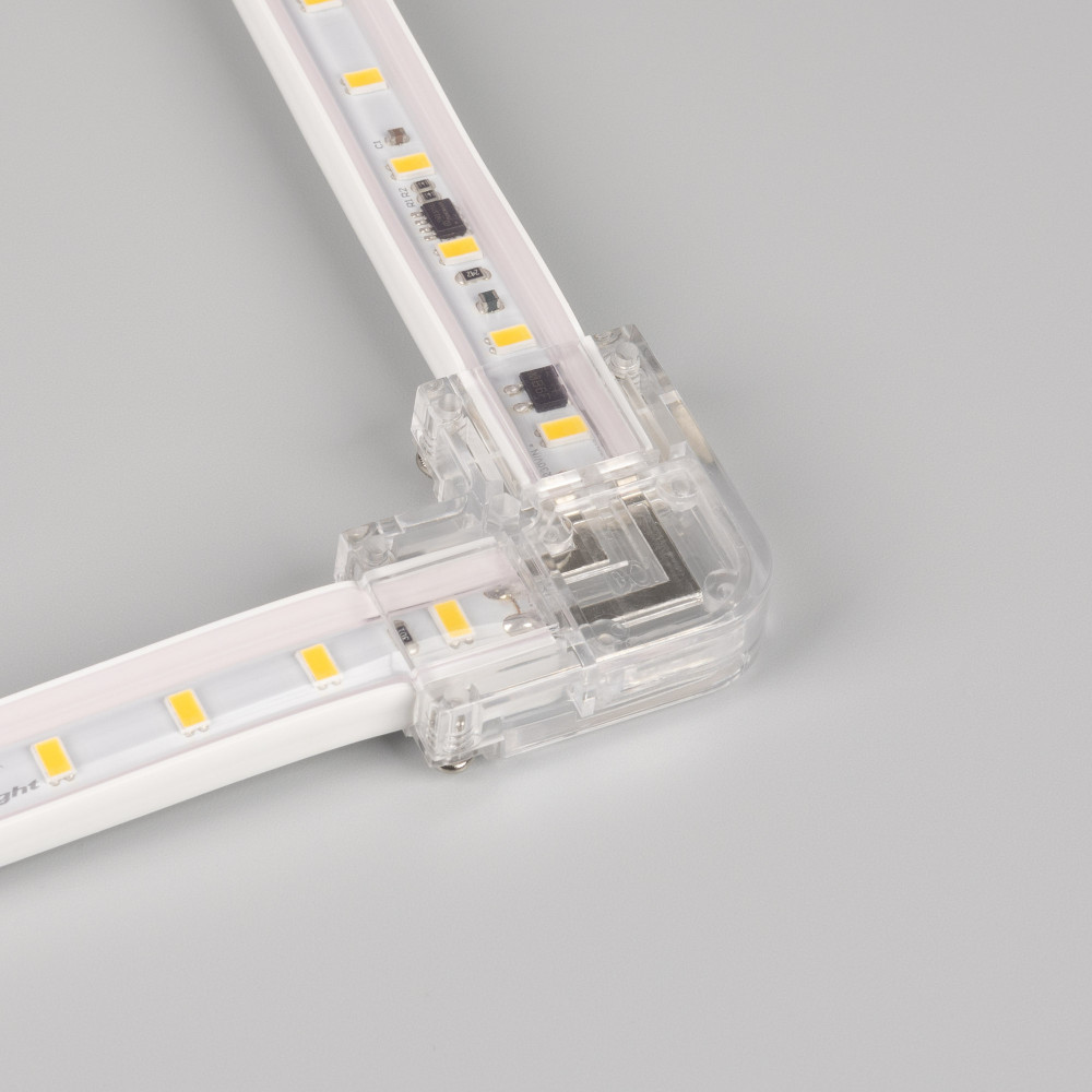 Коннектор угловой для соединения ленты ARL-50000PV (15.5x6mm, тип WP2) под углом 90 градусов. Материал - прозрачный пластик PC.
