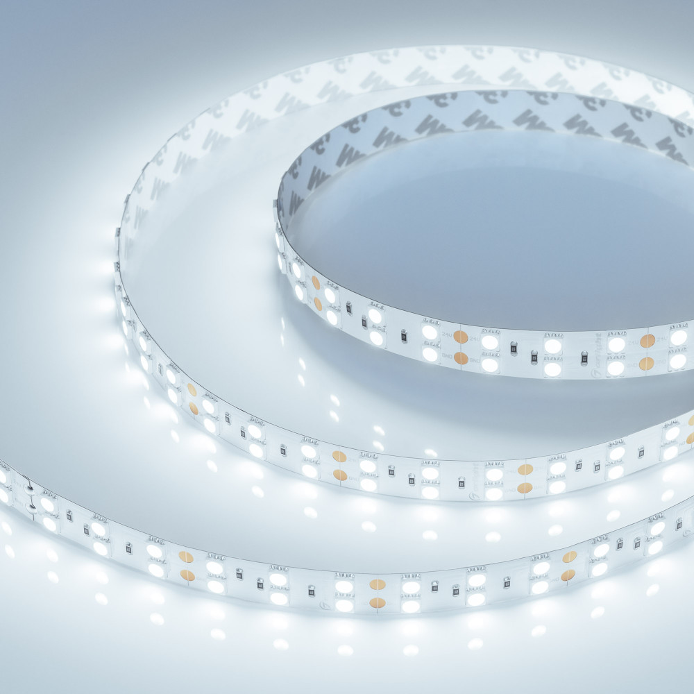 Светодиодная широкая лента RT-B120, открытая. Светодиоды 5060, 120 шт/м (600 шт на 5 м), белая плата, ширина 15 мм, скотч 3M. Цвет ХОЛОДНЫЙ 8000 K, цветопередача CRI>85, угол 120°. Питание 24V, мощность 28.8 Вт/м (144 Вт на 5 м). Размеры 5000x15x2.2 мм. М
