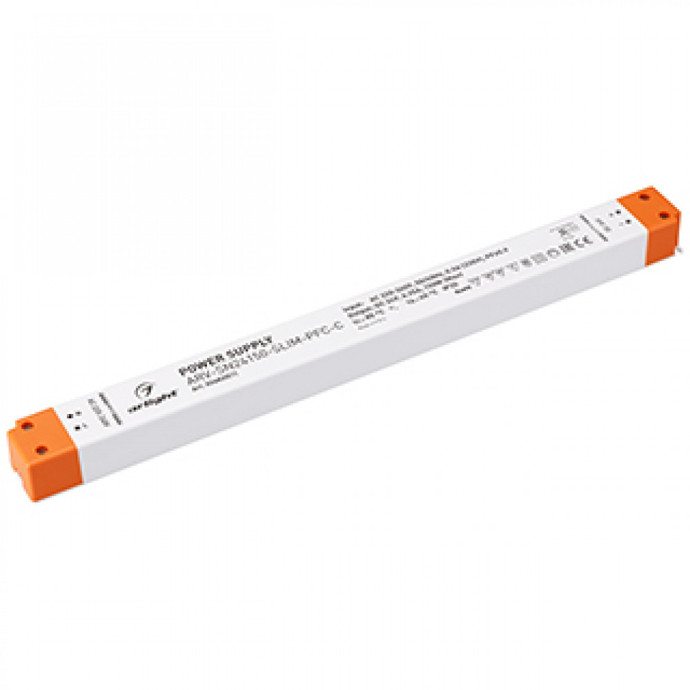 Блок питания ARV-SN24150-SLIM-PFC-C (24V, 6.25A, 150W) 026820(1), Источник напряжения с гальванической развязкой для светодиодных изделий. Входное напряжение 220-240 VAC. Выходные параметры: 24 В, 6.25 А, 150 Вт. Встроенный PFC >0.9. Негерметичный пластиковый корпус IP 20. Габаритные размеры длина 360 мм, ширина 32 мм,