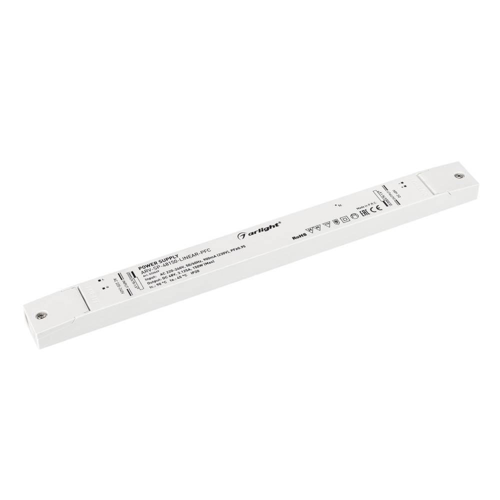 Блок питания ARV-SP-48150-LINEAR-PFC (48V, 3.125A, 150W) 032629, Источник напряжения с гальванической развязкой для светодиодных изделий. Входное напряжение 220-240 VAC. Выходные параметры: 48 В, 3.125 А, 150 Вт. Встроенный PFC >0,95. Негерметичный пластиковый корпус IP 20. Габаритные размеры длина 350 мм, ширина 30 мм