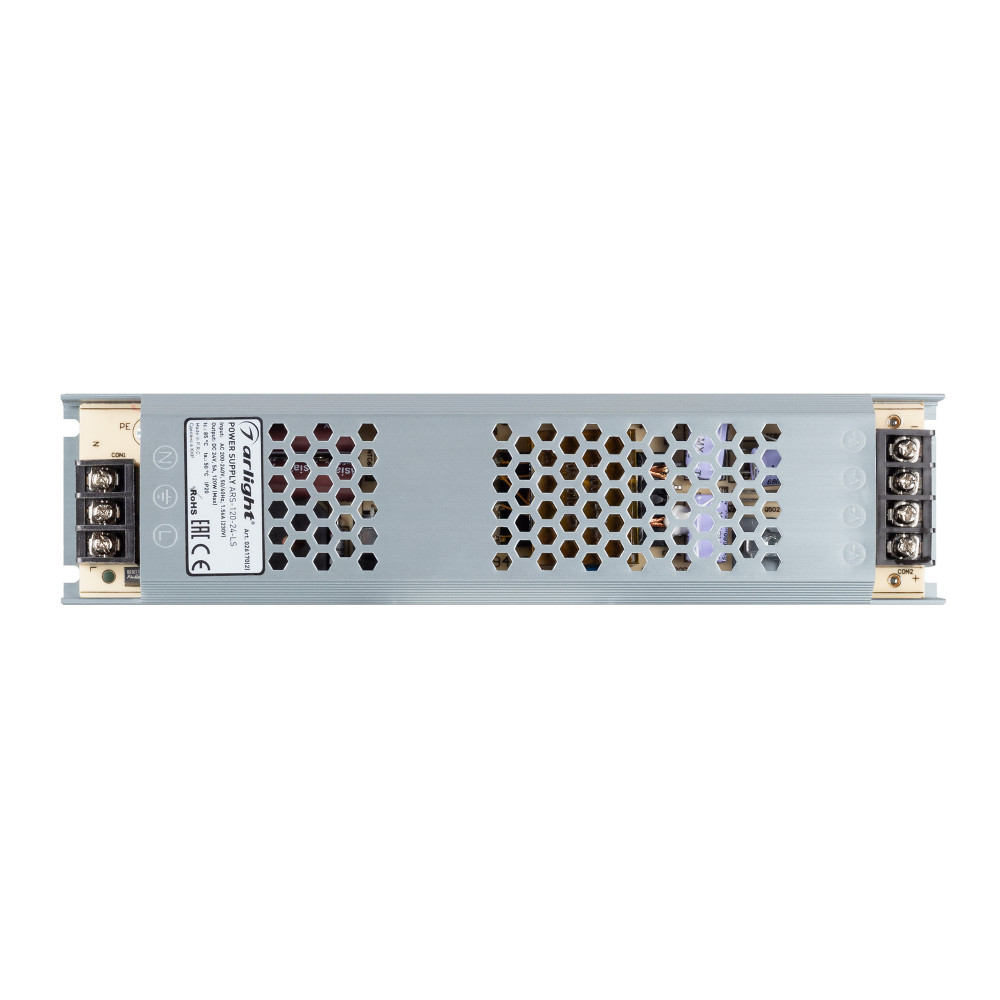 Блок питания ARS-120-24-LS (24V, 5A, 120W) 026170(2), Источник напряжения с гальванической развязкой для светодиодных изделий. Входное напряжение 200-240 VAC. Выходные параметры: 24 В, 5 А, 120 Вт. Встроенный PFC >0.5. Негерметичный алюминиевый сетчатый корпус IP 20. Габаритные размеры длина 225 мм, ширина 5