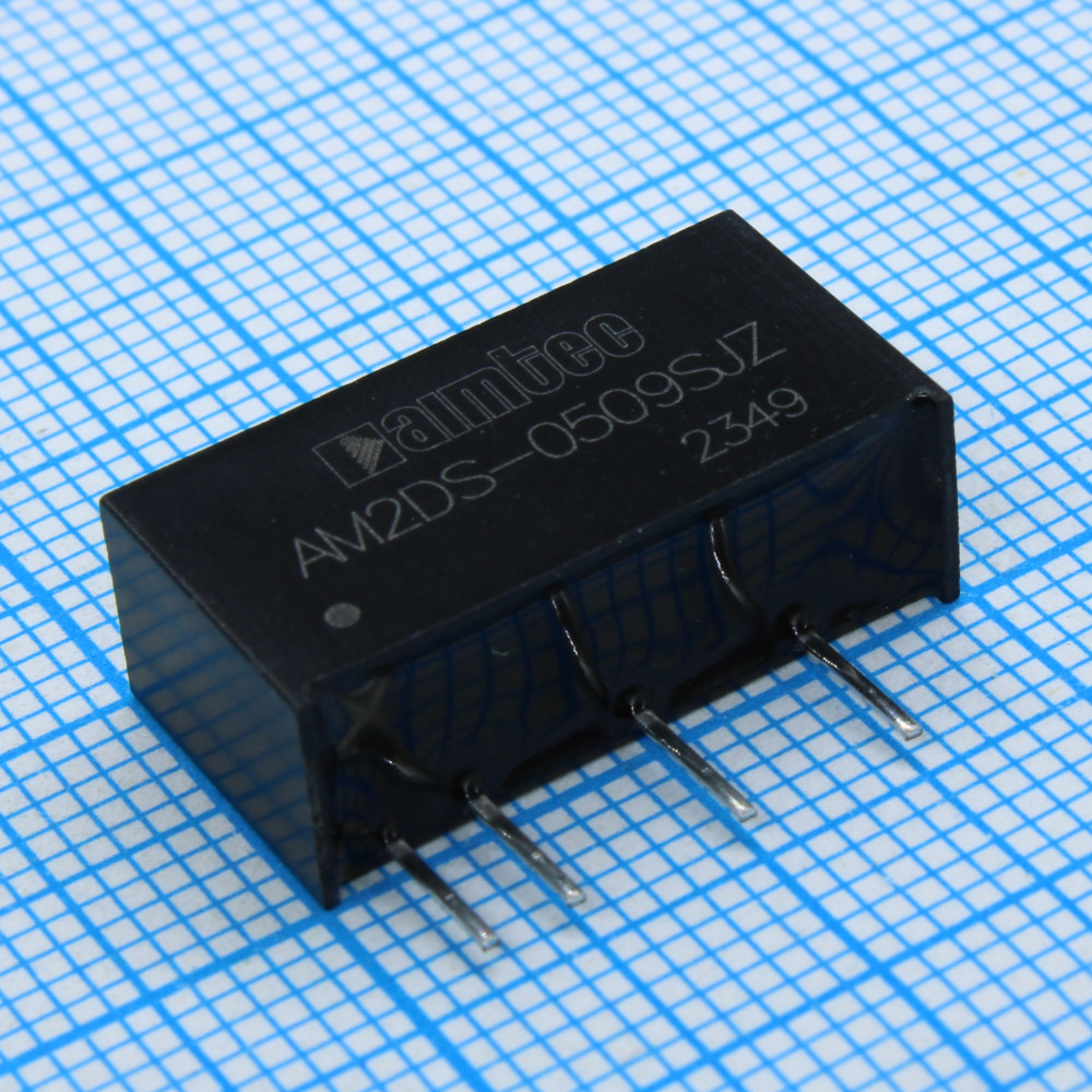 AM2DS-0509SJZ, DC/DC, 2Вт, вход 4.5…5.5В, выход 9В/0.022…0.222А, изоляция 1000В DC, КПД 85%, максимальная емкостная нагрузка не более 1000мкФ, SIP7, 19.65x7.05x10.16мм, -40…105°C, пластик
