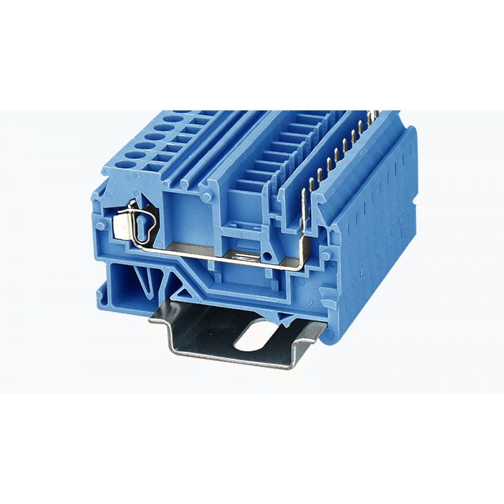 Клемма для подключения внешнего разъема, тип фиксации провода: пружинный, номинальное сечение: 2,5 мм кв., 22А, 500V, ширина: 5 мм, цвет: синий, тип монтажа: DIN35