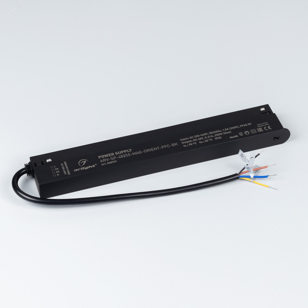 Блок питания ARV-SP-48250-MAG-ORIENT-PFC-BK (48V, 5.21A, 250W) 035779, Источник напряжения с гальванической развязкой для магнитной системы. Входное напряжение 220-240 VAC. Выходные параметры: 48 В, 5.21 А, 250 Вт. Встроенный PFC >0,95. Сверхтонкий пластиковый корпус IP20. Рабочая температура -25…+40 C?. Габаритные размеры д