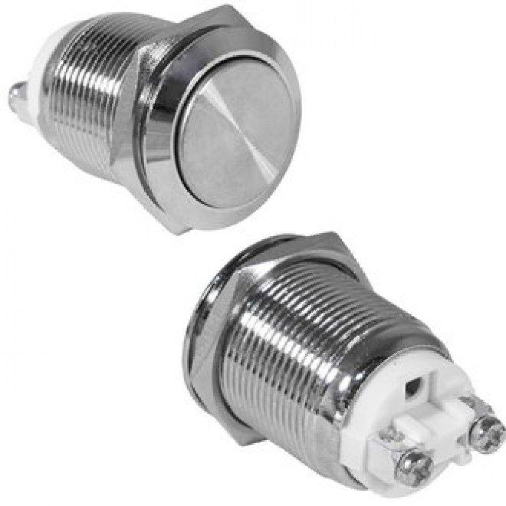 Антивандальная кнопка металлическая с фиксацией, посадочная резьба М19, контакты под винт