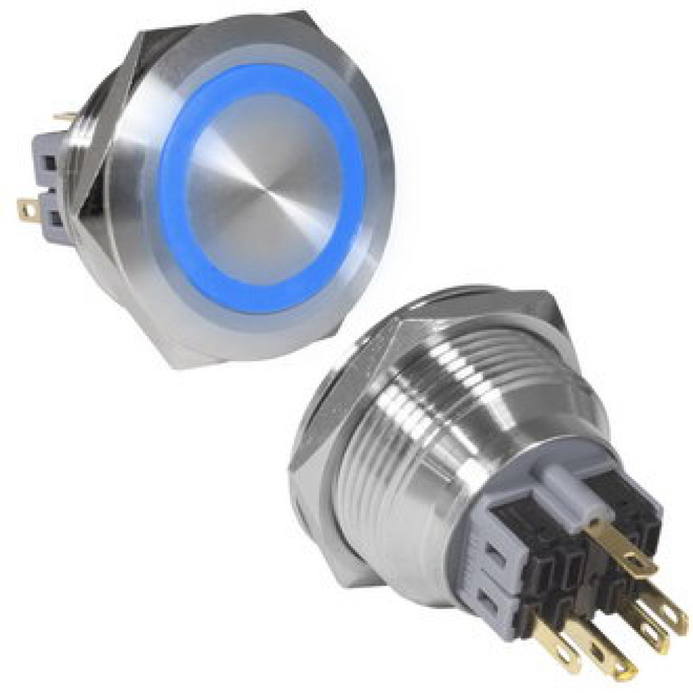 GQ30-11E/B/N ON-(OFF)+OFF-(ON), Антивандальная кнопка металлическая без фиксации с подсветкой, посадочная резьба М30, контакты под пайку